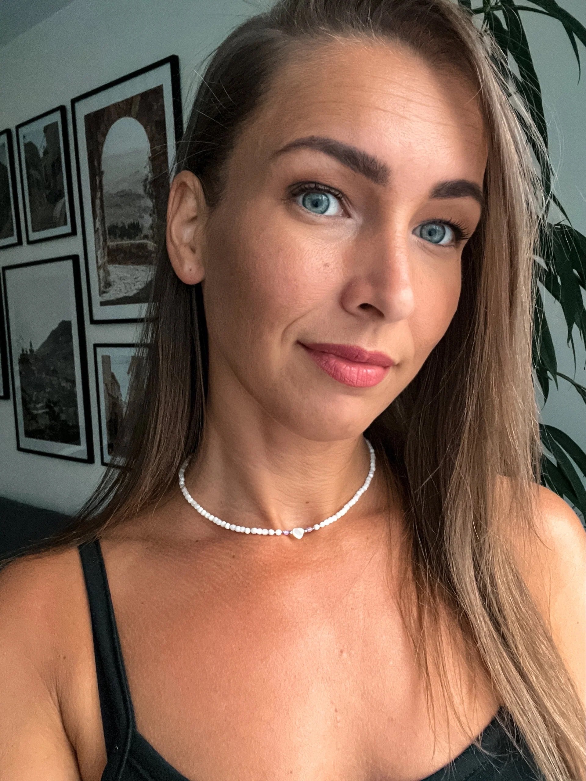 Náhrdelník má krátku predlžujúcu retiazku, vďaka ktorej sa pohodlne prispôsobí veľkosti krku.