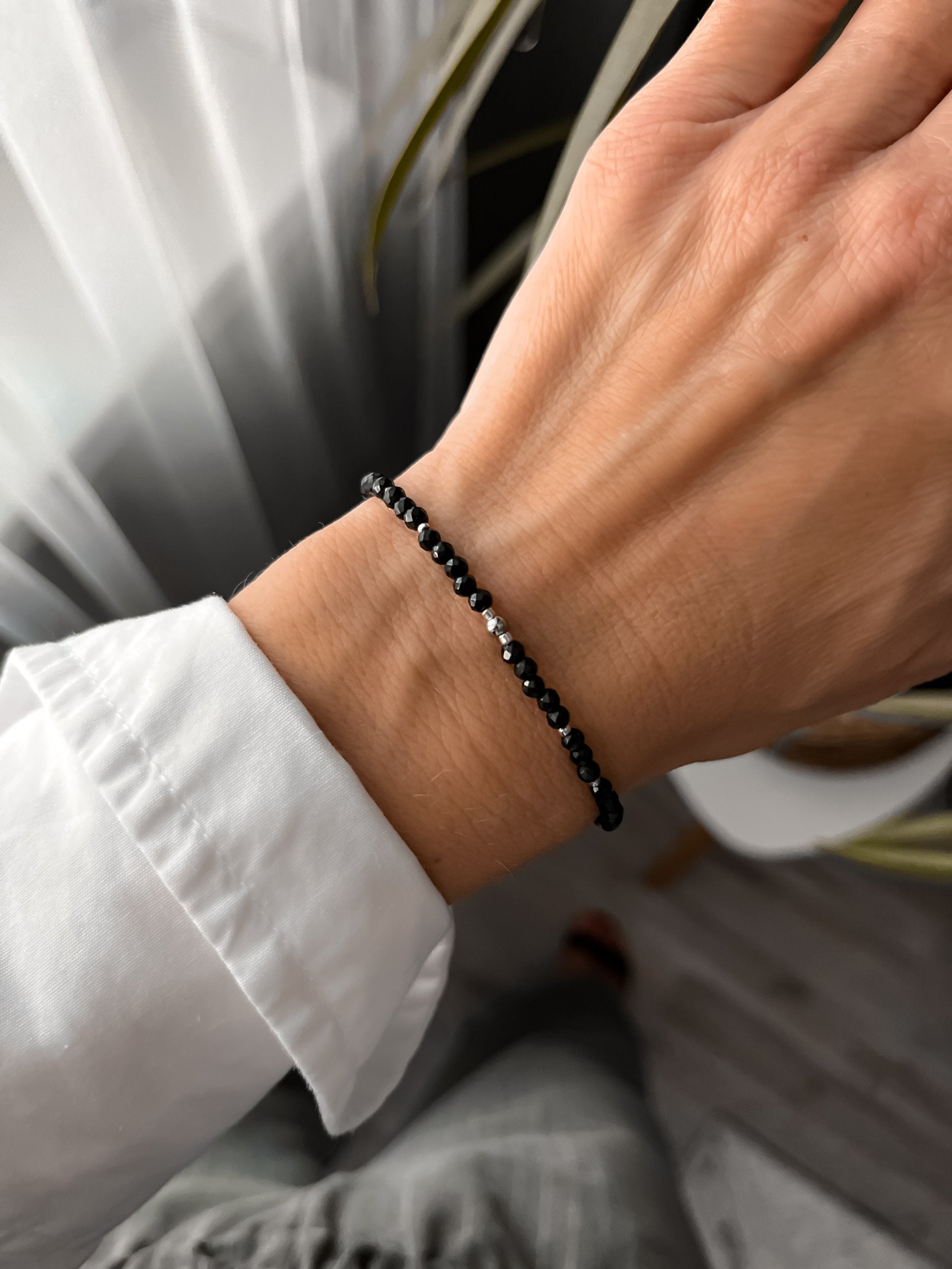 Elegantný náramok z čierneho facetovaného ónyxu je symbolom sily, stability a vnútornej rovnováhy.